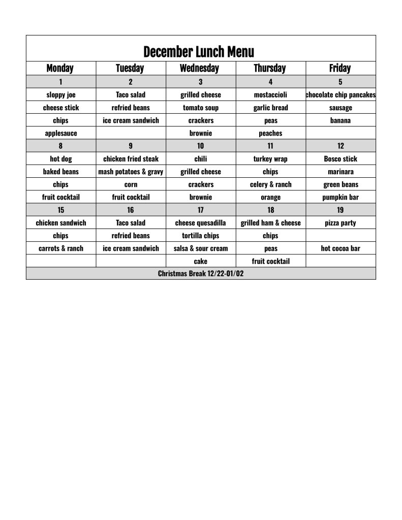 Lunches are $3.25 per day.